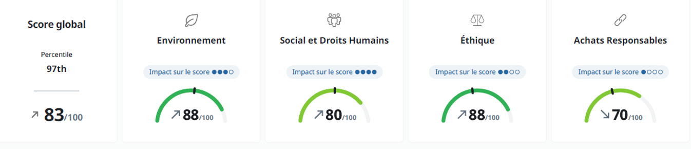 To assess our CSR approach as a whole, we call on the organisation Ecovadis, a specialist in evaluating companies’ CSR performance. In 2026, we were delighted to receive the gold medal with a score of 83/100.